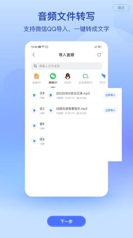 2.导入音频识别:语音转文字、音频转文字、文字提取、文字转写、文字识别等;
