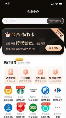 1、团宠卡APP是一款能够让用户享受超多会员权益的优惠折扣的平台。