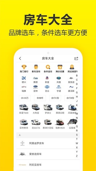 让大家快速找到心仪的房车,每个房车的具体信息也能查看,
