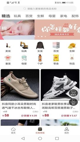 红鱼生活是一款非常时尚的手机购物的神器,为用户提供了巨多的热门的商品的资源,用户还可以在线参与免单的活动,在购买结束后还可以在自己的主页上看到相关的物流的更新,让自己更快的完成线下的收货,遇到不满意的商品也可以一键的咨询相关的工作人员,喜欢在线购物的用户可以下载试试这款APP哦。