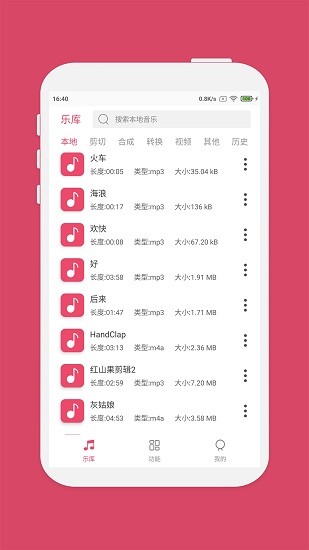 2、自动的显示本地的音乐以及你制作完成的音频文件,让你查找更轻松了。