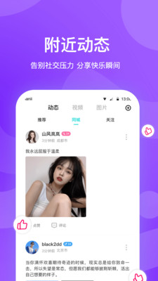 1、同城在线:可以与同城好友随时互动聊天,探讨更多丰富的话题。