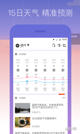2、天气预报:45天超长预报和48小时小时预报将陪伴您预测未来。