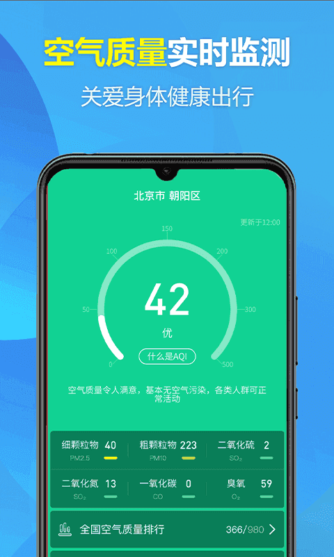 3、【空气质量实时监测】实时监测空气质量,关爱健康,全面护航。