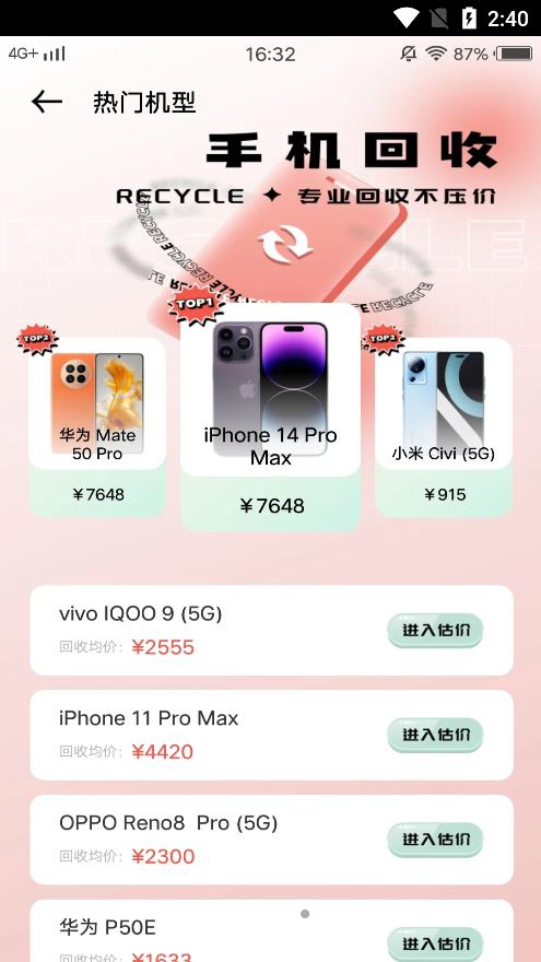 3、所有的二手手机都是非常的优质的,你喜欢的各种手机型号都能在这个平台上搜索到的。