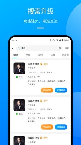 1.用户有任何的需求都直接可以在这款平台上咨询里面的律师。