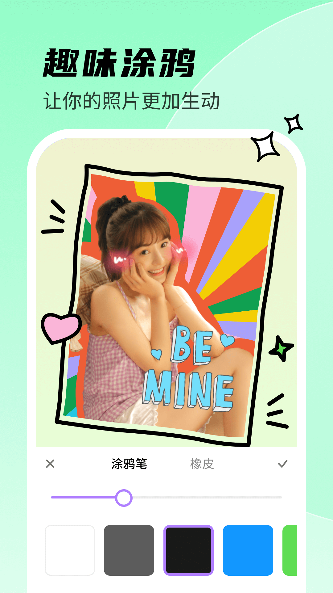 2、多种贴纸素材随你使用,轻松打造独树一帜的你,各种风格都能驾驭。