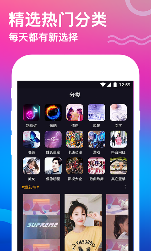 3、这里新壁纸的类型多多,超权威的手机壁纸工具,各种壁纸可以自由选择。