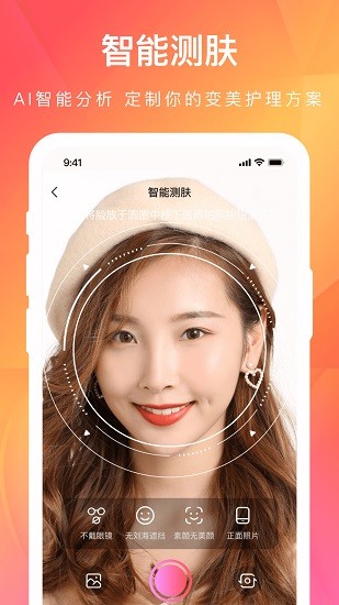 2、线上可以使用智能的测肤工具,检测整体皮肤的健康度。