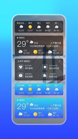 每次都可以切换不同的城市,还能够一次性查看多天的天气情况,非常的方便。