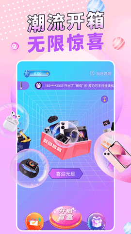 1、首先打开盲盒玩家软件,可以看到有许多的功能和选项,我们点击开启盲盒;