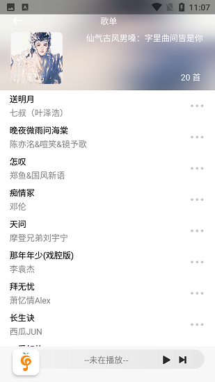 打开小橘音乐搜索你喜欢的音乐就可以了,在主页播放列表中就可以看到你喜欢听的歌曲;