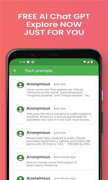 即时ai聊天是一款可以和机器人对话的软件,你可以把你的相关问题咨询它,它会给你解答的,可以满足不同用户的需求,带给你更好的体验,是一款可以带给你便利的软件,多种聊天模式都是相当好用的,这里的功能很强大,你可以感觉像与真人聊天一样有需要的用户赶紧来下载吧。