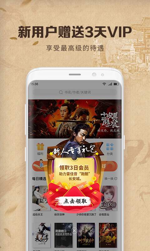 2、新手礼包,新用户的福音,初次见面,我们为您精心准备了VIP特权等许多福利,启动中文书城即可领取。