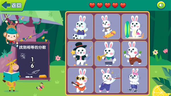 1、将对数学口算的要求与游戏机制相结合,利用几何直观的方法帮助孩子更好的理解通分与约分的意义。