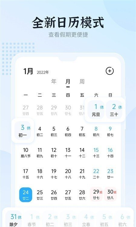 全新日历模式:查看假期更便捷