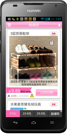 不够便宜我不要使用9.9包邮购美折可以检索到淘宝网上面最新的打折商品,小编最近就一直在用,9块9包邮送货,服务到家,能省不少钱哦。