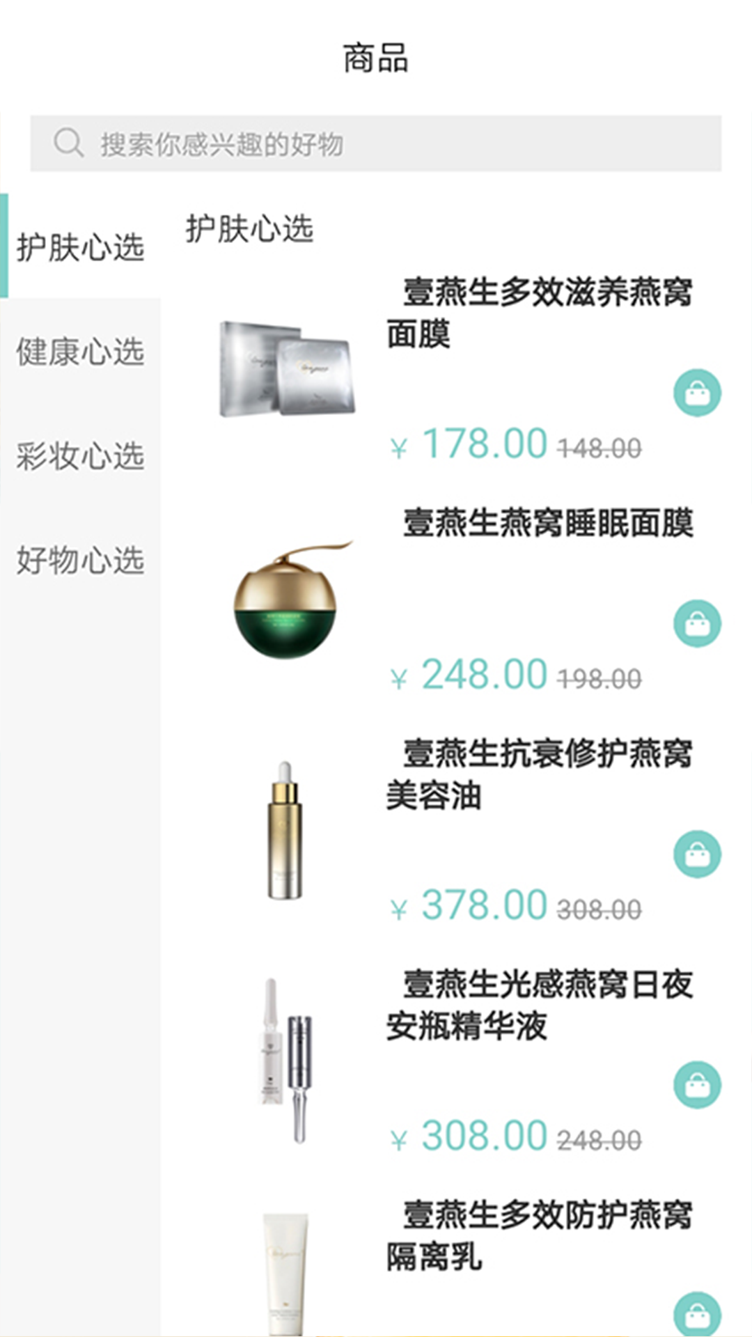 消费者登陆壹燕心选app及小程序可以快速查询到每款产品的成分、效果、使用方法等信息,轻松一键下单。