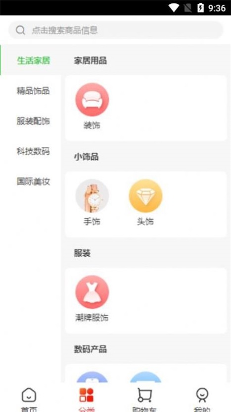 2、你可以按照分类去查找自己需要的物品,也可以输入关键字直接搜索,使用没有任何限制。
