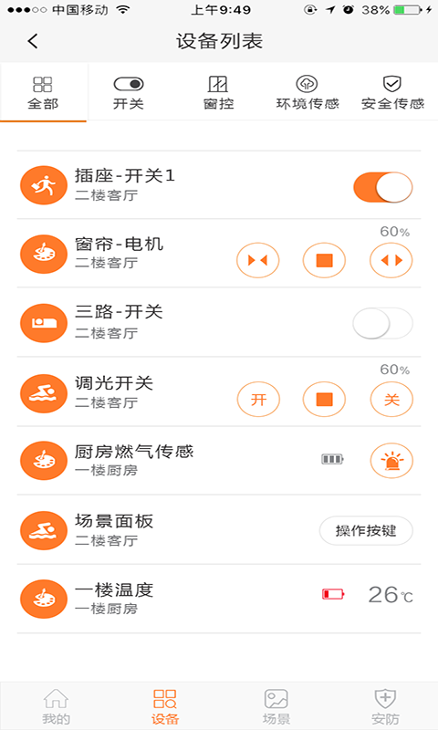 1)可以添加多种智能设备,包括智能插座、窗帘、燃气传感器等;