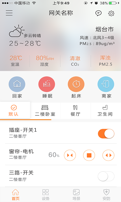 4)支持场景控制模式,智能设备自动根据不同场景执行任务;