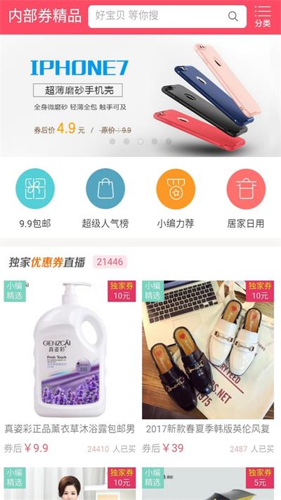 3)内部优惠券数额大,领券后的商品价格更低,让用户省钱更多。
