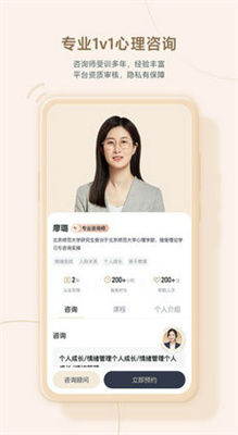 是一款专业的心理咨询软件,提供1v1专业咨询、心理测评、咨询师培训课程和资讯资源等多项服务,