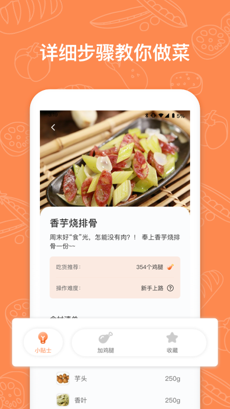 4、非常好用的手机在线食谱工具,收录大量的食谱,内容丰富详细。