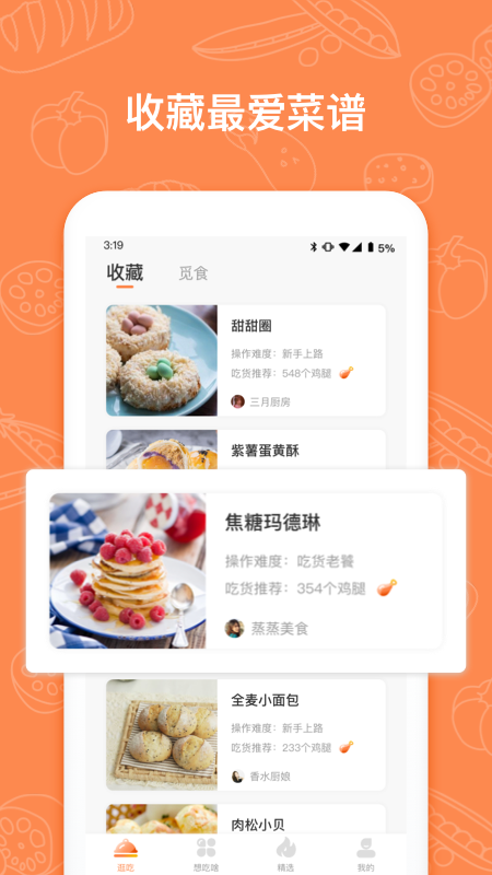 3、食材搜索更便捷,根据菜名和食材就能迅速找到菜谱。