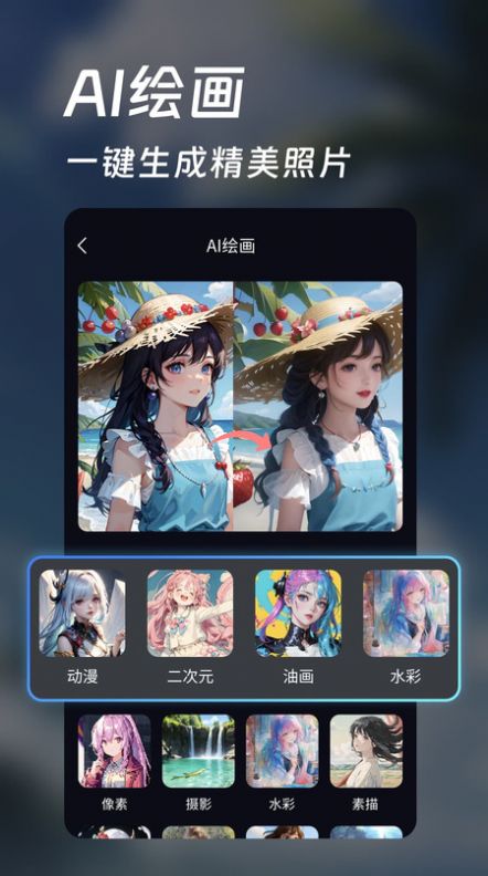 1、可以生成多种形式的头像和壁纸,包括卡通、摄影、插画等多种风格;