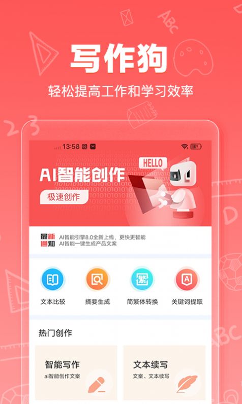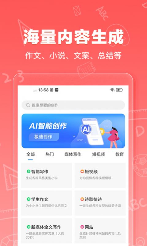 AI写作狗屁不通文是一款很实用的写作工具软件,可以帮助用户快速的编辑出需要的文章内容,软件内拥有先进的自然语言处理技术,操作十分的简单,需要的文章主题都是可以在线编辑的,可以高效率的完成各种文章生成,节省了许多时间,软件支持多种语言,赶紧来下载试试吧。