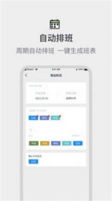 1)支持手动选择和周期选择的两种排班方式:用户可以根据自己的需求选择手动排班或者周期排班,灵活满足不同的工作需求。