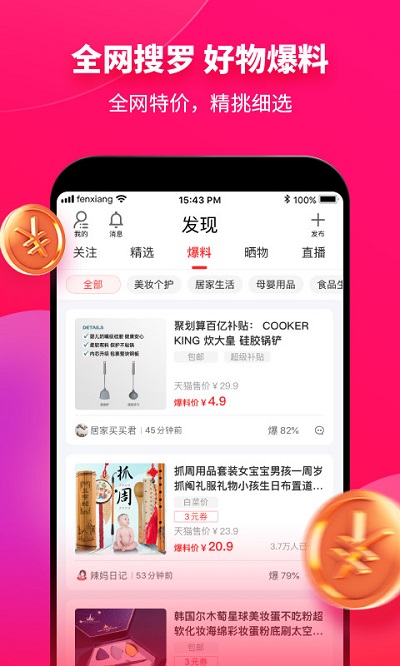 粉象生活软件是一款可以帮助用户在网络上购物有更好的新鲜感和体验感的手机应用,软件内中的产品可以保证质量是顶级的,价格是实惠的,用户可以进行比价后购买,软件还有一个新的特点,那就是有买就会有返利,给用户比最低价还低价,让用户开心,感兴趣的小伙伴可以自行下载。