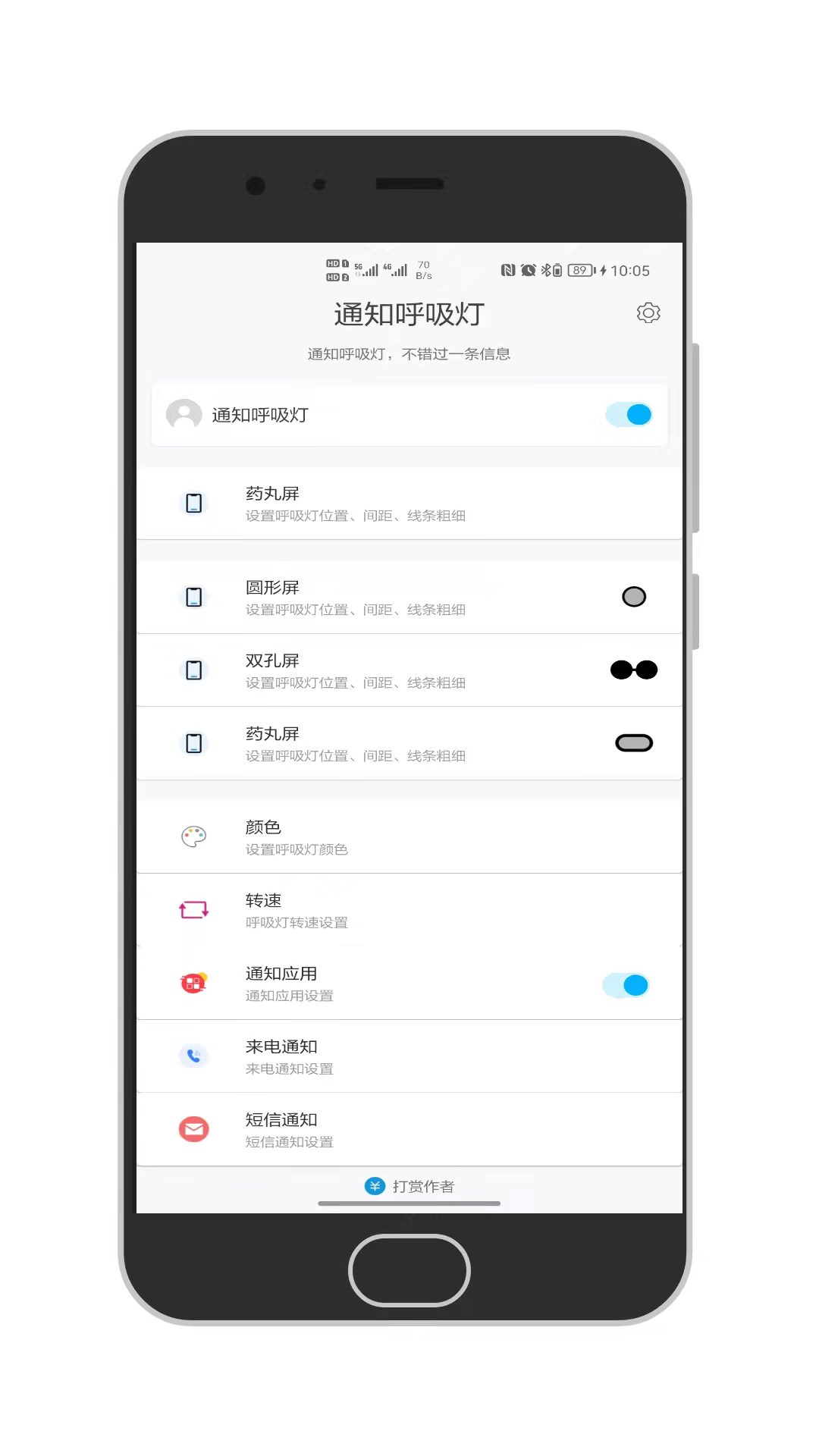 3、用户可以通过该工具调节手机上的呼吸灯。软件中有很多选项可供挑战,让用户的手机更加个性化,让你的呼吸灯闪烁不同的灯光提示。