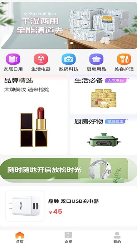 2.接着用户就可以点击首页,在此选择家庭日用等类型的商品浏览