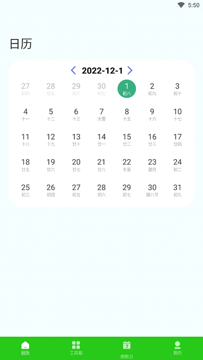 1、界面非常简洁,相关的日历功能划分一目了然,你可以随时根据需要进行选择。