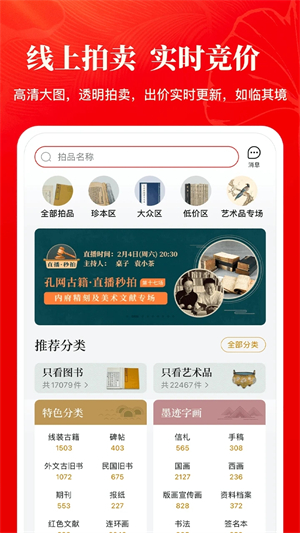 2、拍卖:实时参与拍卖,低价起拍,满足不同层次的图书购买和收藏需求