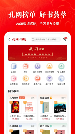 1、孔夫子旧书网下载安装软件是一款简单易用的购物手机客户端,是国内知名二手书店-孔夫子旧书推出的官方APP。