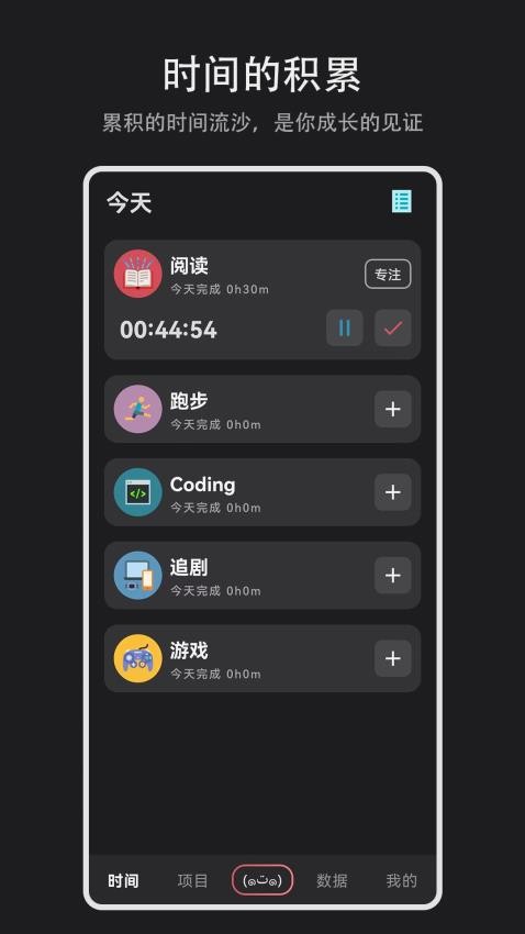 每天记录不同项目的投资时间,统计项目的总投资时间。