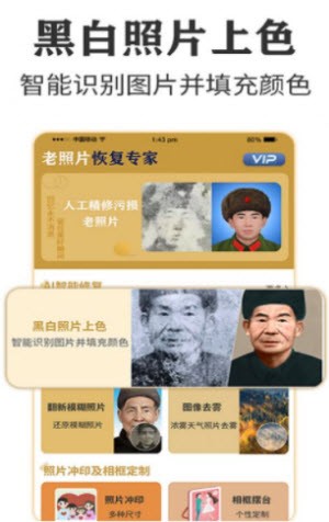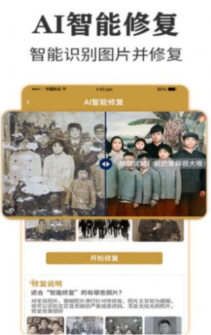 1.能修复破损模糊的黑白老照片着色,完美恢复其原有外观。