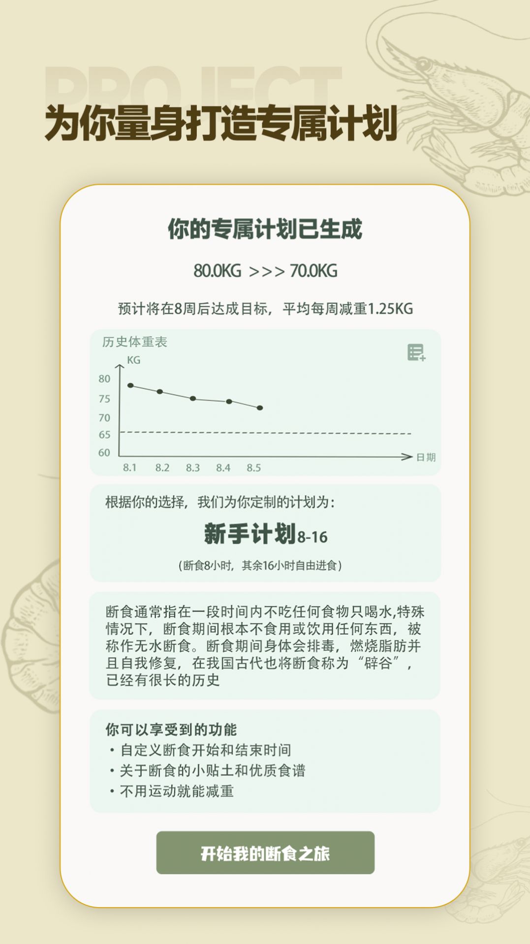 一瓜轻断食是一款专为在运动健身减肥的用户所提供的饮食记录规划的应用软件,软件可根据用户的身体健康指标数据情况来为你量身定制打造专属你的运动减肥计划项目,在这里用户将可以选择筛选饮食标签来设计每天的影视摄入状况,还能实时的记录用户的积累断食时间。