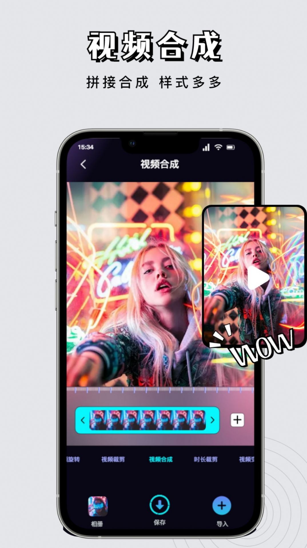 1、多视频合并编辑,允许用户轻松将多段视频合并为一个完整的作品;