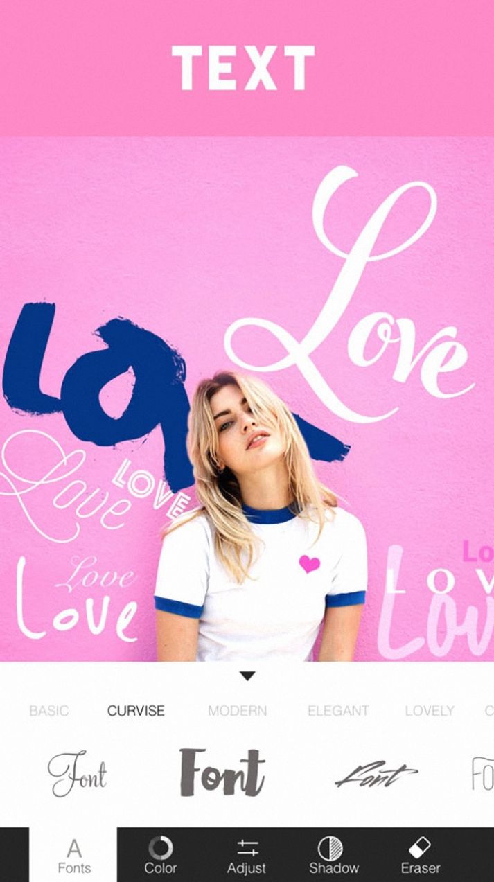 1、精美贴纸,经典字体包,不关你是贴纸控还是文字控,都可以开心的美图;