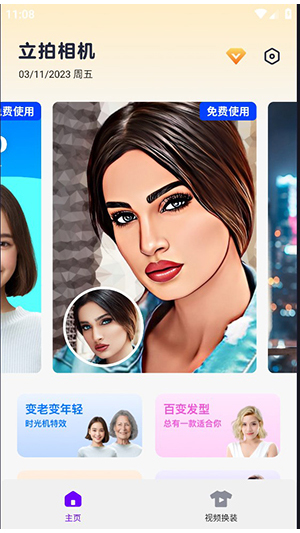 立拍相机是一款多功能滤镜美颜相机软件,使用该软件的用户将可以体验到快速回到年轻模样和预测未来变老的样子,提供了上百种不同的发型推荐,能根据用户的形象特征来进行推荐,智能拍照一键美化,让你的照片更加的精致好看,可自定义的添加水印容易位置,有兴趣的可以来拍照体验一下吧。