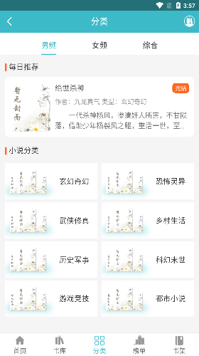 2、精选书籍,为了方便阅读,专门开设了男女频道。