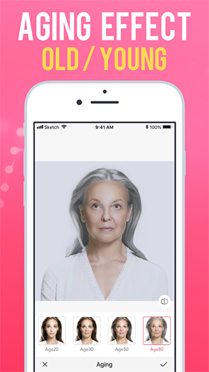 面部老化相机是一款很专业的脸部年轻老化多样变化拍照相机应用软件,使用该软件的用户可以选择照片或进行拍摄的功能来进行图像的修补美化过程,可以为你生成年轻和变化时候的模样,拥有丰富的个性模板素材和特效贴纸以及智能美化的功能,可以让用户拍照更加的有特色有质量。