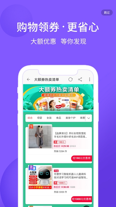 1、优惠购买——用户能够非常优惠的进行线上的购买模式,自由进行优惠券搜索模式;