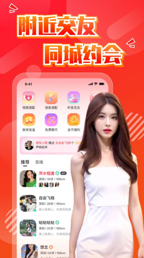1、支持本地速配,遇到了比较心动的异性,可以直接打招呼;