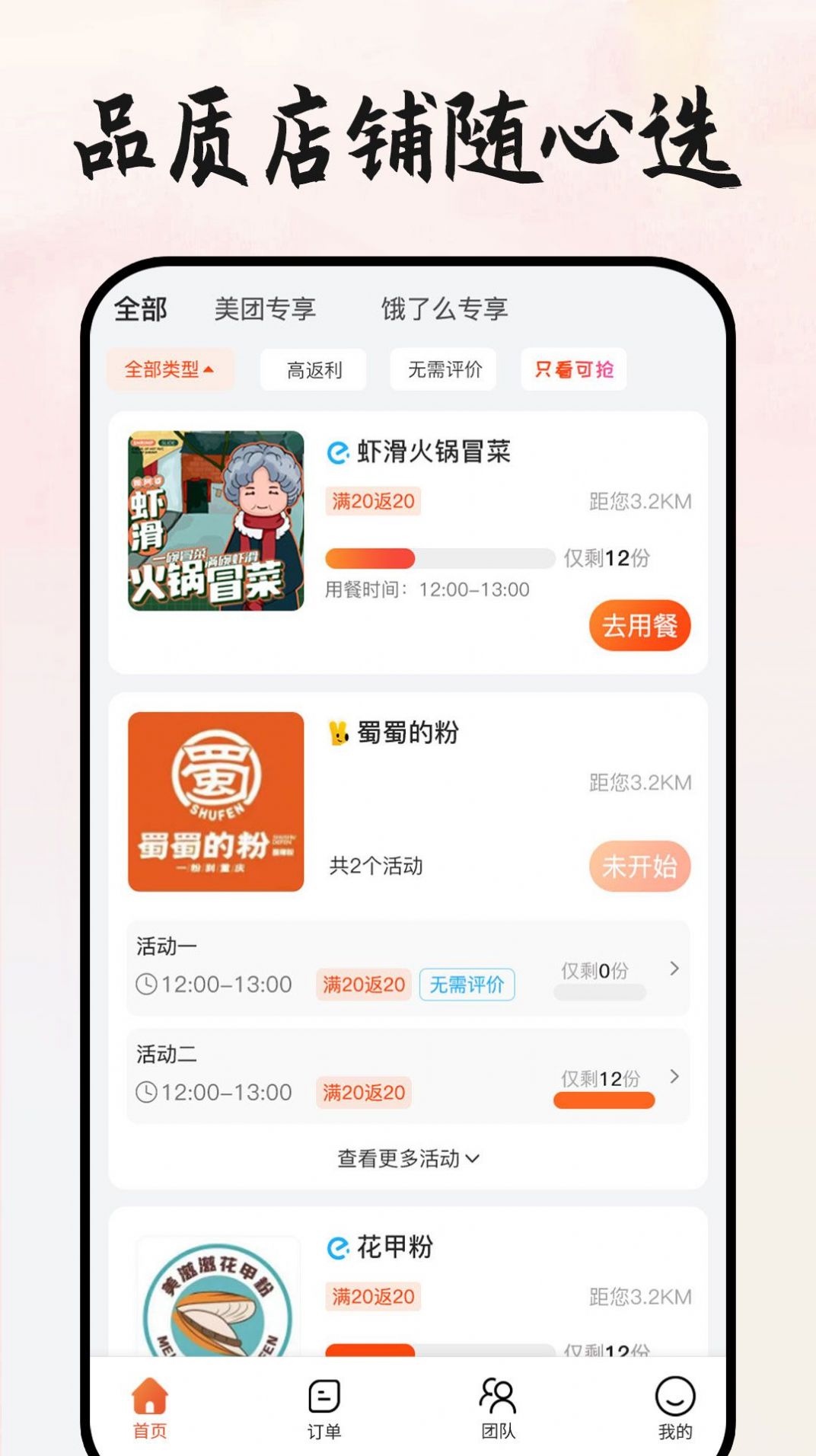 2、平台精选了全城比较地道的美食,一键下单,即可快速的享受;