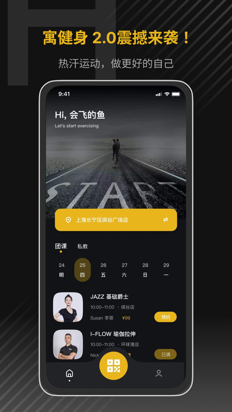 寓健身是一款专为喜欢运动健身用户所打造的管理自律应用软件,这款软件有很多专业的健身教练提供动作项目指导,可以支持线上的课程预约,提供私教和团课两种学习模式,定位你所在的城市地区来获取腹肌你的健身馆,可提供二维码功能,让用户能更好的进出健身场馆。